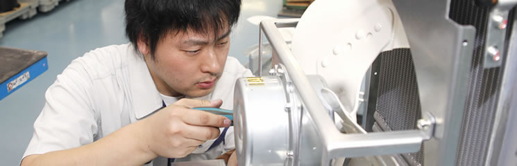 当社の製品は、流れ作業の大量生産品ではなく、マシニングセンタや研削盤といった工作機械のそれぞれに対応する製品を1台ずつ、手仕事で製造する多品種少量生産がベースです。その品質には、製造に関わる一人ひとりが責任を持ち、すべての製品に徹底した品質試験を実施して出荷しています。 提供する製品を通じて海外にも直結するようになった現在も、社員一人ひとりが品質を磨き上げ、地域に根ざしつつ世界で役立つ製品づくりをしていることに誇りを持っています。