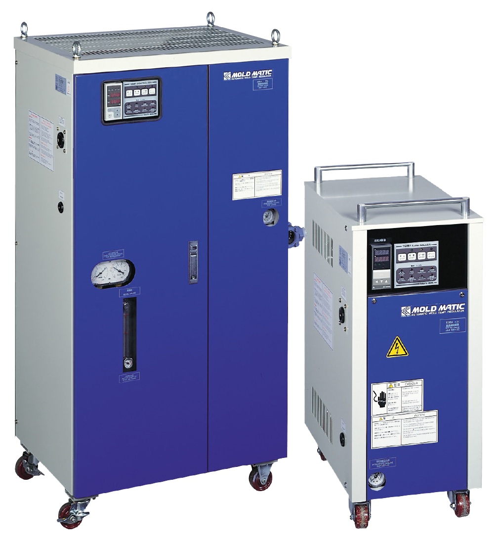 金型の中を循環する熱媒体(油・水)を迅速に精度高く加温・冷却し、金型の温度を高精度に応答性良くコントロールします。水用、油用でそれぞれシリーズ展開しており、射出成形、プレス成形、ブロー成形、樹脂、ゴムの金型に対応する製品を揃えています。