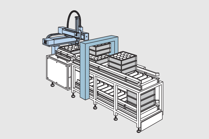 - トレー循環機能により、フロアスペースの縮小が可能となり、工場内を有効に利用することができます。