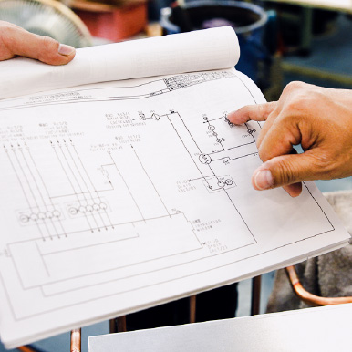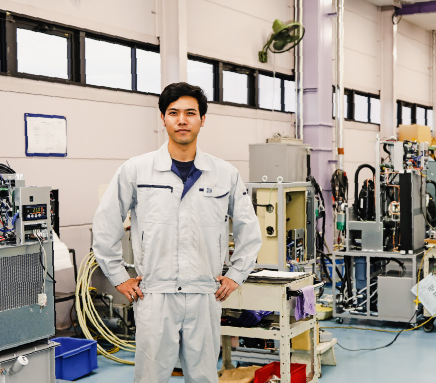 ひと口で言うと、とてもチームワークの良い職場です。基本的に液回路の配管1人、電装工程1人、性能検査1人というチームで業務にあたっていますが、手が空けば担当以外の業務をサポートしあったり、有給休暇の取得も融通しあったりといった感じになっています。